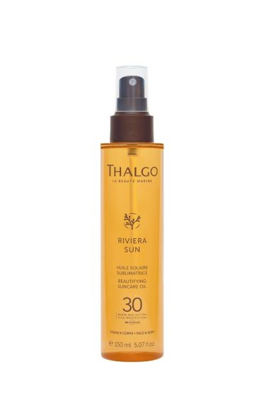Thalgo Beautyfying Suncare Oil SPF 30 – Face & Body is een droge zonne-olie die de huid én het haar beschermt, verzorgt en een subtiele satijnen glans geeft. De lichte, zijdezachte textuur trekt snel in, laat geen plakkerig of vettig laagje achter en omhult je in een zomerse, luxe glow.