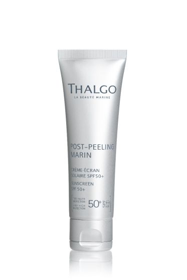 THALGO Sunscreen SPF 50+ is een ultralichte, hoge zonbescherming speciaal ontwikkeld voor de gevoelige huid na een peeling, fruitzuurkuur of intensieve exfoliatie. De crème helpt pigmentverschuivingen en irritatie door UV-straling te voorkomen en beschermt de huid tegen zowel UVA- als UVB-stralen.